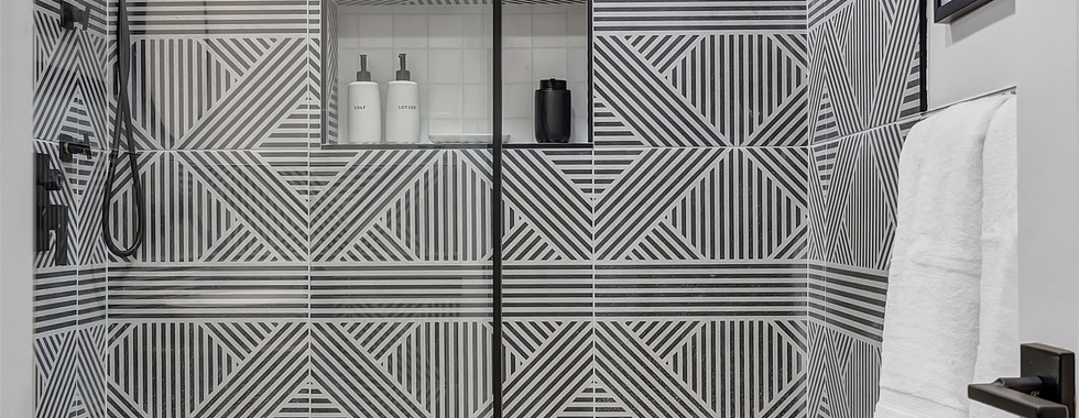 The lower unit is the first of the two to be designed and renovated. Here, DIH Designs accomplished their client's goal of creating a spacious, calm, and functional residence by utilizing every inch of the space. They converted the opening under the stairway into a bathroom oasis, and the closed-off stairway leading to the second floor into a pantry and library nook. They created niches and closets for additional storage, and took advantage of every opening behind closed-in walls. While designing the interiors, the use of multi-functional furniture maximized the open floor-plan creating ample room for functional living.