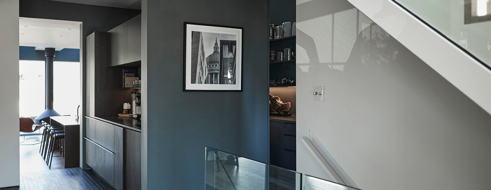 This historical Georgetown row house captivates a modern eclectic design that harmoniously blends contemporary aesthetics with diverse styles. The homeowner enlisted Lisa Shaffer and her design-build team at Lisa & Leroy to renovate the home and create a functional, inviting space where they could entertain and live comfortably. Upon purchasing the row house, they envisioned an interior that reflected the timelessness of the neighborhood and their lifestyle. The team's intention was to achieve a thoughtful design in which each aspect of the space had been meticulously planned to accomplish multiple objectives such as maximizing square footage, capturing the quintessential Georgetown aesthetic, and creating an inviting, cozy ambiance.